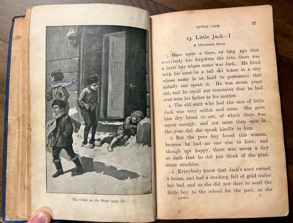 I was thrilled with the gift and took a shine to two of the pieces in particular: the poem โ€œTry, Try Again,โ€ and a Christmas story called โ€œLittle Jack.โ€ In the story, Jack lives with a cruel aunt and gives one of his shoes to a child whose circumstances are even worse than his own. In the end, Jack’s generosity is rewarded by a kind stranger, and his aunt’s heart softens as she is overcome by the Christmas spirit.