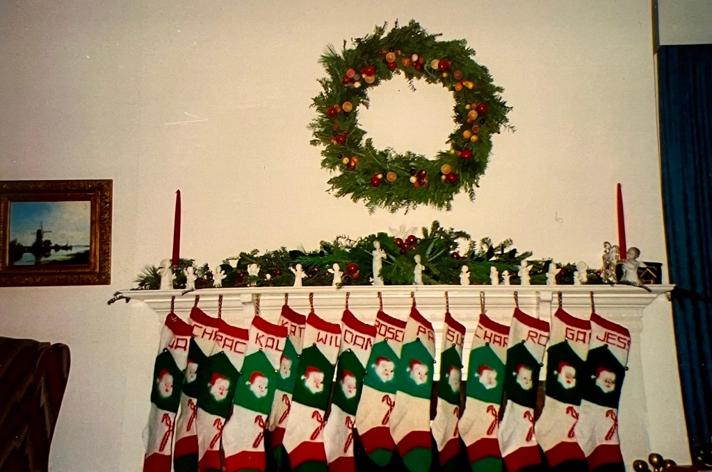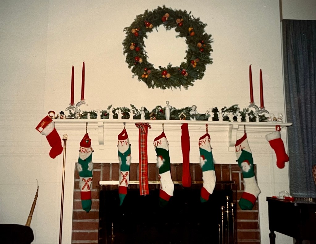 Every year, my parents put up a tree a few weeks before the holiday, and we all decorated it together. My dad made two big wreaths and hung them on either side of the front door, then strung lights in the bushes outside. Inside, my mom put up greens and holiday decorations collected over the years. The stockings she had knitted for each family member were hung on the mantle.