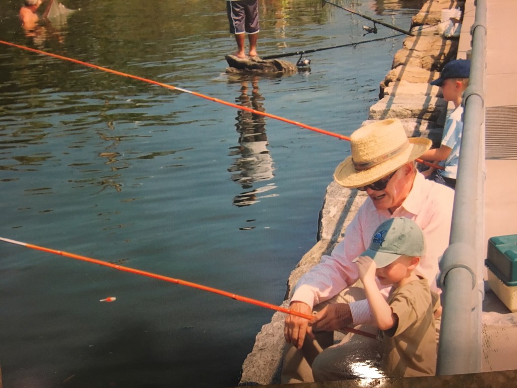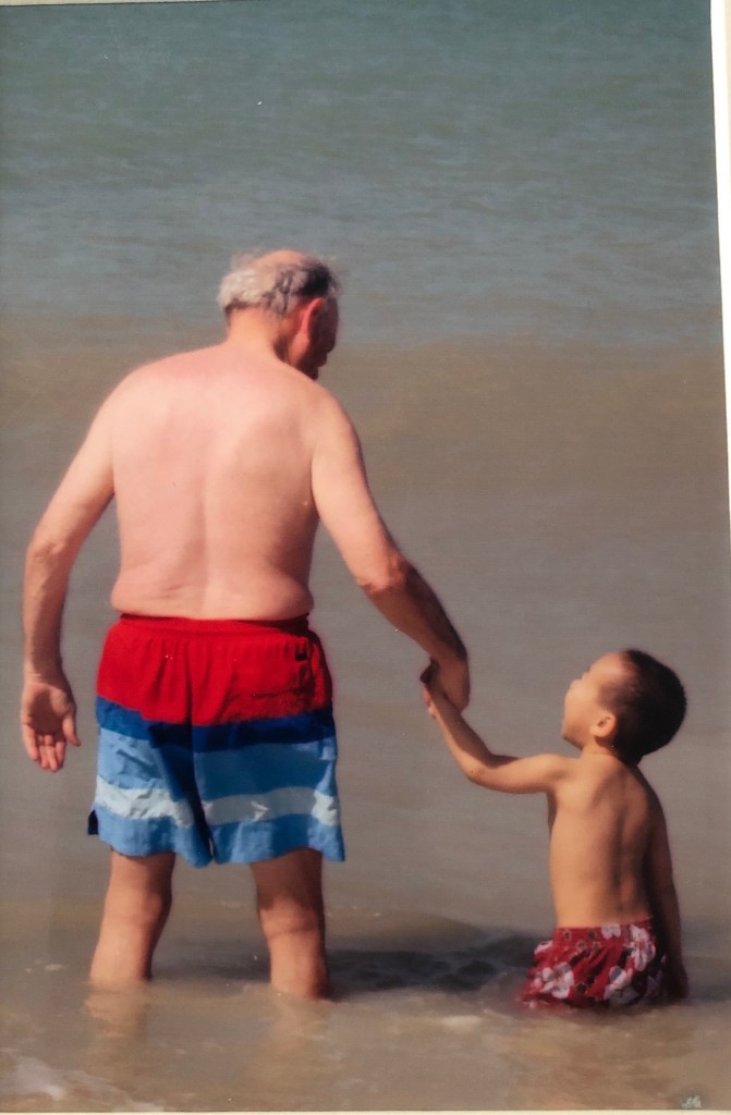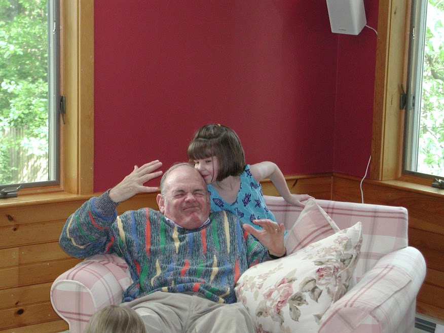 To get a sense of who my dad is, take a look at the pictures of him with his grandkids over the years.  They tell the story.  Here he is playing a game of Horsie, here he is teaching kids how to fish, here he is in the ocean, playing a game, reading a book, tying a tie.
